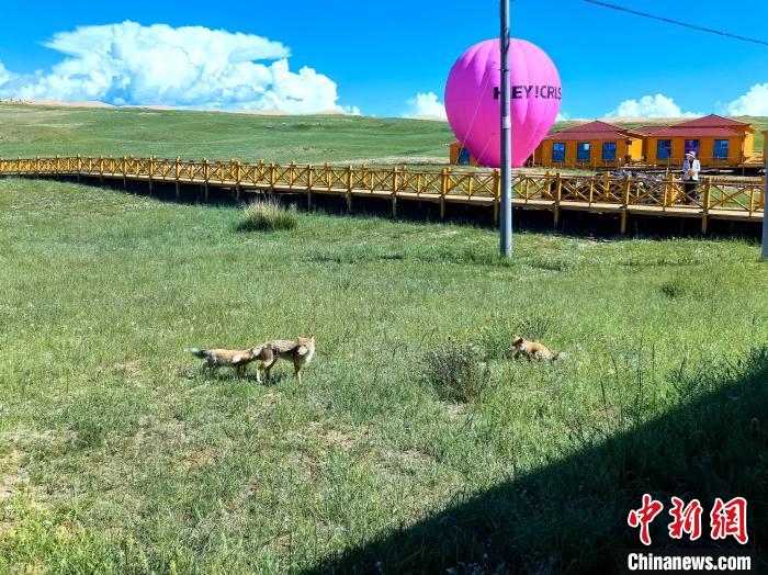 Le 3 juillet, des journalistes ont pu filmer de près une famille de renards tibétains, composée de cinq membres, entrant et sortant sous la passerelle en bois d'une zone pittoresque de la baie de Jinsha, située sur la rive nord du lac Qinghai dans la préfecture autonome tibétaine de Haibei, dans la province du Qinghai. Selon le personnel de la zone touristique, les quatre renards tibétains vivent sous la passerelle sous la surveillance de leur mère, jouant occasionnellement et s'amusant dans l'herbe à c?té de la passerelle. Les touristes de la zone peuvent filmer de près ces scènes adorables. Selon les observations des journalistes, la famille de renards tibétains ne craint pas les humains, et ils interagissent même avec eux en se regardant, à une distance de moins de deux mètres.