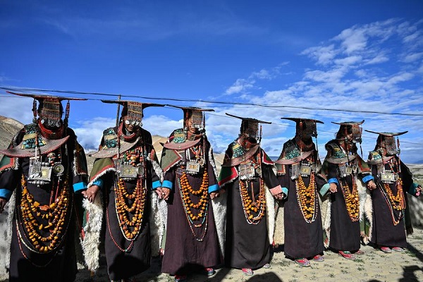 Originaire du district de Pulan, dans la région autonome du Xizang (sud-ouest de la Chine), le costume folklorique de Pulan est un vêtement traditionnel porté lors des célébrations depuis plus d'un millénaire. Pesant plus de 20 kilogrammes, une pièce de ce costume unique est généralement décorée de métaux et de bijoux rares, tels que l'or, l'argent, la cire d'abeille, le corail et la turquoise.