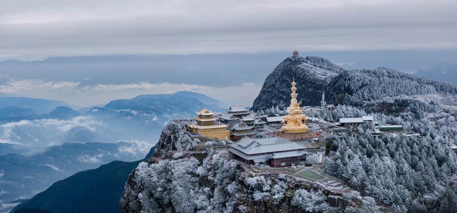 Le sommet du mont Emei, recouvert de neige, dans la province chinoise du Sichuan (sud-ouest), le 20 novembre 2024. (Photo : Jiang Hongjing)