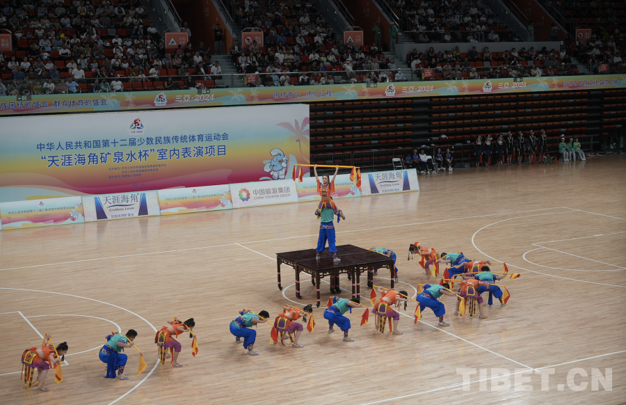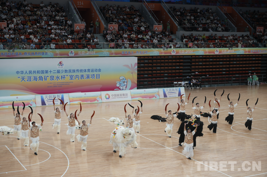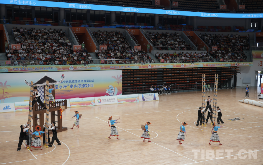 Le 24 novembre, les programmes de performance des 12e Jeux nationaux des sports traditionnels des minorités ethniques se sont tenus dans le stade du centre sportif de la ville de Sanya, dans la province de Hainan.