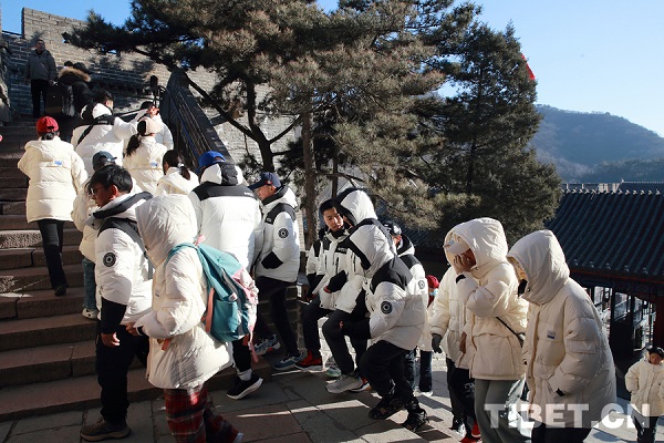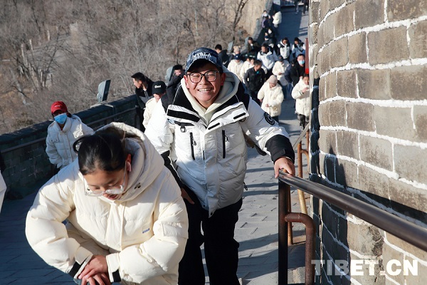 Le 14 février, un groupe d'élèves et d'enseignants venus de quatre districts frontaliers de la région de Ngari, dans la région autonome du Xizang, est arrivé en bus à la très attendue Grande Muraille de Badaling, à Beijing, dans le cadre d'un voyage d'étude. ? Celui qui n'est pas allé sur la Grande Muraille n'est pas un vrai héros ! ? Pleins d'énergie, les enfants ont escaladé avec enthousiasme jusqu'à la tour de guet la plus haute.