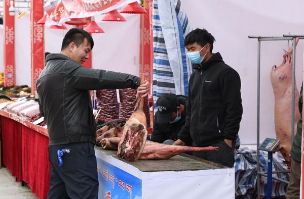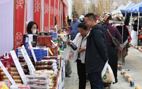 La foire-exposition du Festival des produits du Nouvel An ? Bonheur à Chengguan · Une vie avantageuse ? se tient au marché agricole polyvalent de Gongbutang, à Lhassa. à travers cette exposition de produits festifs, cet événement offre aux habitants un large choix de provisions pour le Nouvel An, créant ainsi une ambiance chaleureuse pour célébrer les fêtes.