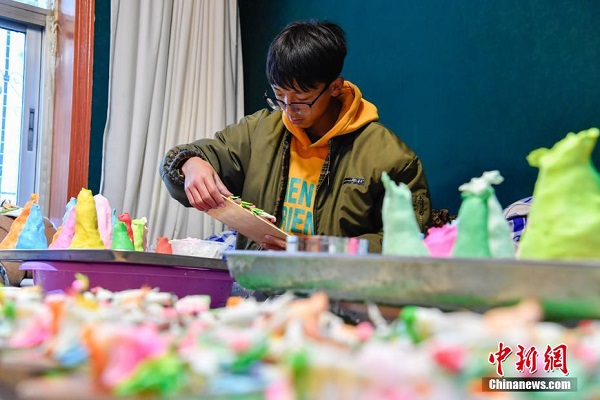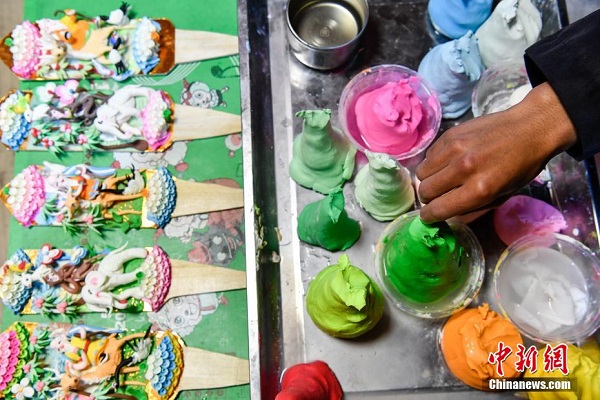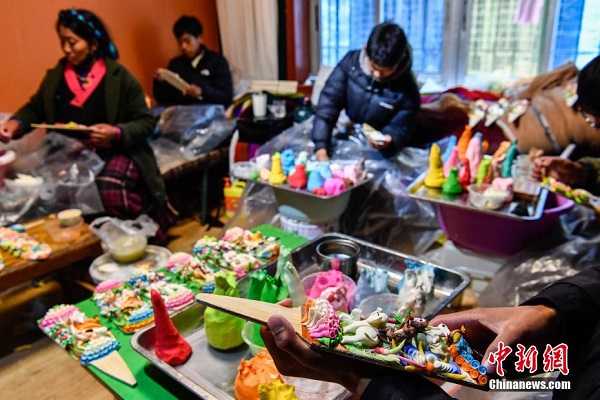 • Lhassa, au Xizang : des artisans fabriquent des sculptures en beurre en prévision du Nouvel An tibétain