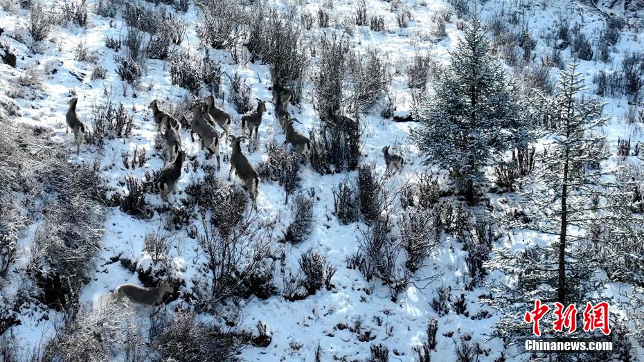 Au début du mois de mars, le comté de Qilian, situé dans la préfecture autonome tibétaine de Haibei, dans l'arrière-pays des monts Qilian de la province du Qinghai, a accueilli ses premières chutes de neige depuis le début du printemps du Nouvel an chinois. à travers l'objectif de son drone prenant des photos aériennes, un photographe a capturé les vastes montagnes enneigées, où des troupeaux de bharals parcourent les forêts le long des pentes escarpées à la recherche de nourriture, esquissant ainsi une véritable scène de paysage septentrional. Ces dernières années, grace à des mesures de protection telles que le reboisement et la préservation des sources d'eau, le taux de couverture végétale dans le comté de Qilian s'est considérablement amélioré, les animaux sauvages, autrefois cachés dans les profondeurs des montagnes, apparaissent désormais fréquemment sous les yeux des habitants.