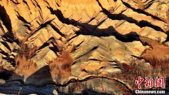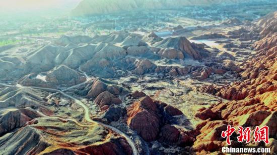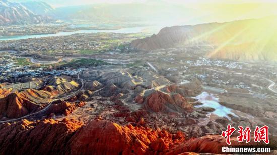 Par une journée de printemps sur le plateau, dans le bourg de Gandu, situé dans le comté autonome Hui de Hualong, dans la ville de Haidong, de la province du Qinghai, les montagnes vermillon de couleur rouges-brunes, sous les reflets du coucher de soleil, ressemblent aux veines de la terre, le fleuve Jaune, clair et sinueux, serpente harmonieusement à travers les cha?nes de montagnes et les villages nichés dans les vallées, exhibant la beauté de ce paysage serein.