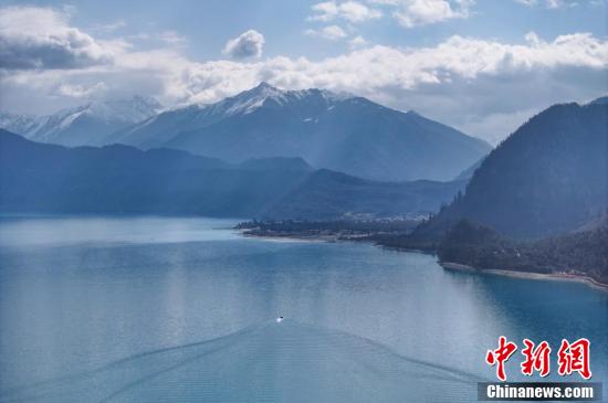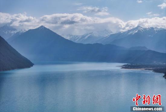 Le 30 mars, vue aérienne du lac Basum Co en plein printemps. également appelé lac Tsogo, ce joyau naturel situé dans le district de Gongbo Gyangda, à Nyingchi au Xizang, fut le premier site touristique classé 5A, la note maximale, pour ses paysages au Xizang. Des images prises par drone révèlent ses eaux d'un bleu profond, encerclées par les montagnes enneigées et les forêts, tel un saphir bleu serti dans l'écrin des cimes. (Photo prise par un drone.)