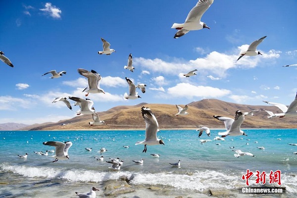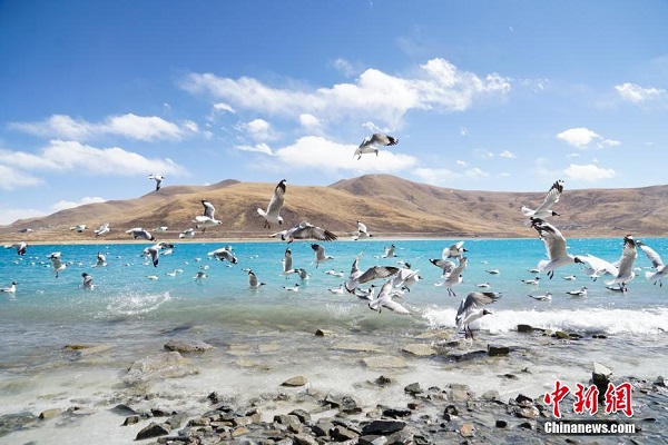 En tibétain, Yamzhog Yumco signifie ? lac de jade ?. Il s'agit du plus grand lac endoréique au nord de l'Himalaya, situé à plus de 4 440 mètres d'altitude. Au printemps, les eaux du lac reflètent le ciel bleu, les nuages blancs et les montagnes environnantes. Des groupes d'oiseaux aquatiques s'envolent, composant un magnifique tableau écologique.