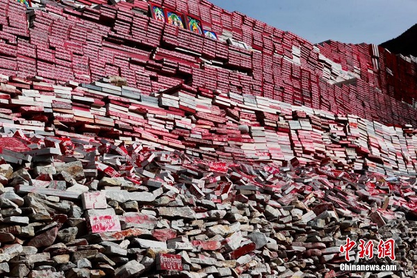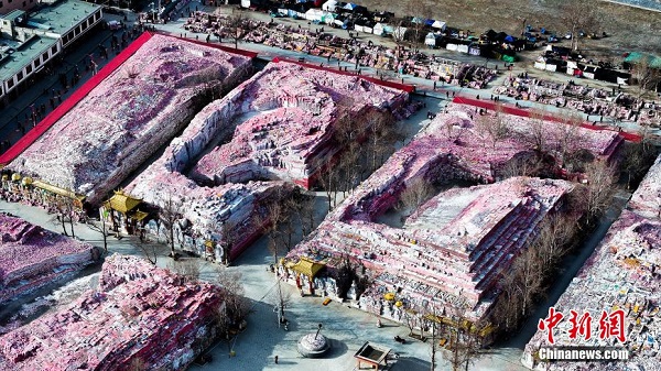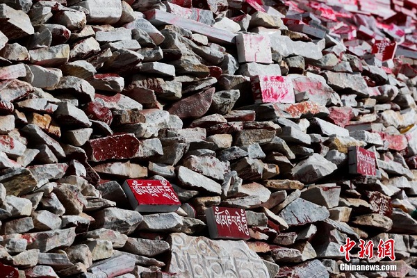 Le 12 avril, une vue aérienne a été capturée dans la ville de Yushu, située dans la préfecture autonome tibétaine de Yushu, province du Qinghai, montrant le plus grand tas de pierres Mani au monde. Selon les informations disponibles, la formation et le développement du site Mani de Gyanag à Yushu remontent à plus de 300 ans. La cité abrite environ 2,5 milliards de pierres gravées. En 2002, elle a été inscrite au Guinness des records comme le plus grand tas de pierres Mani au monde.