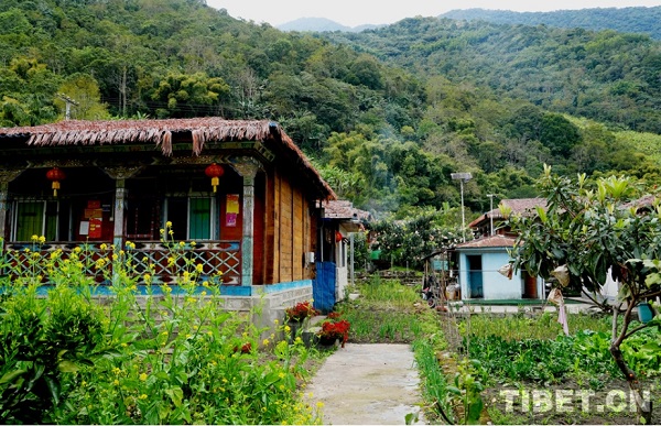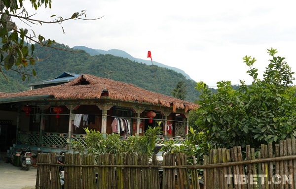 L'entrée d'une maison d'un villageois de Dêxing, dans le canton de Dêxing, du comté de Mêdog