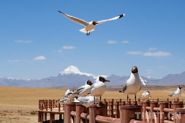Face à lui, s'étend le lac Mapham Yutso, qui s'étend comme une nappe de jade. Considéré comme l'un des plus hauts lacs d'eau douce du monde, il constitue un refuge pour d'innombrables êtres vivants du Pays des neiges, nourrissant les prairies et les zones humides du sud-ouest du plateau Qinghai-Xizang.