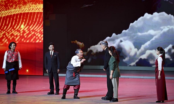 Un gala intitulé "Chants joyeux de la région du plateau enneigé" est organisé à l'occasion du 60e anniversaire de la fondation de la région autonome du Xizang, dans la capitale régionale Lhassa, le 20 ao?t 2025. (Photo : Li Xiang)