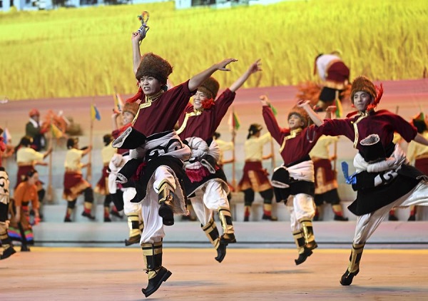 Un gala intitulé "Chants joyeux de la région du plateau enneigé" est organisé à l'occasion du 60e anniversaire de la fondation de la région autonome du Xizang, dans la capitale régionale Lhassa, le 20 ao?t 2025. (Photo : Xie Huanchi)