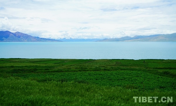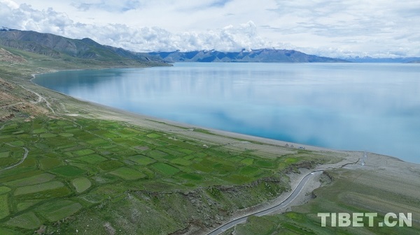 Situé dans le comté de Nyima, à Nagqu, dans la région autonome du Xizang, le lac Tangra Yumco est le quatrième plus grand lac du Xizang. Sur sa rive sud s'élève l'imposante montagne enneigée Dargo, tandis que sur sa rive nord se trouve l'ancien village d'Ombu-Sud. En plein été, le lac est entouré de montagnes et offre un paysage où l'eau et le ciel se confondent. Les prairies bordant ses rives sont d'un vert luxuriant, et des oiseaux aquatiques effleurent la surface du lac avec élégance, ajoutant une touche de vitalité à cette quiétude.