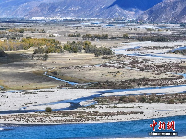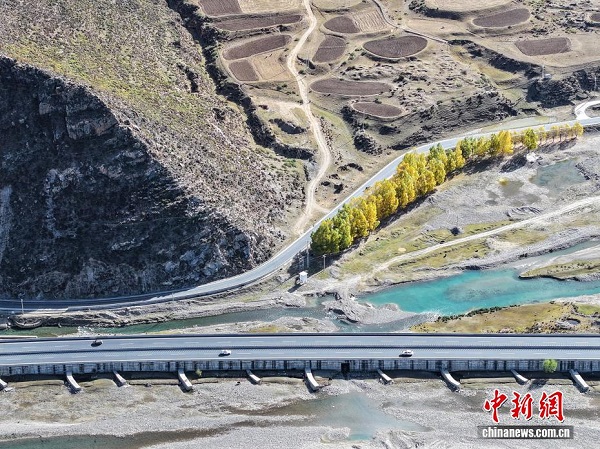 • Le charme automnal de la rivière Lhassa est à son apogée : villages et routes se fondent dans le paysage