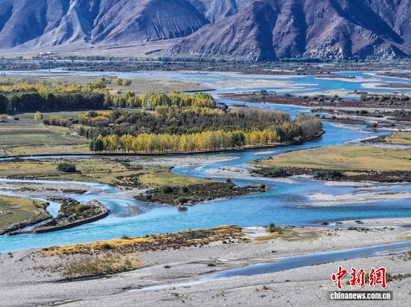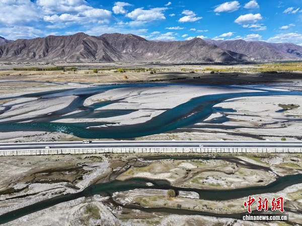 Ces derniers jours, les rives de la rivière Lhassa, situées dans le comté de Maizhokunggar, de la ville de Lhassa, dans la région autonome du Xizang, sont entrées dans leur plus belle saison automnale. Les eaux cristallines de la rivière reflètent le ciel azur et les nuages blancs, tandis que les villages le long des berges et la route express reliant Lhassa à Nyingchi se complètent à merveille, créant ainsi un paysage digne d'une peinture.