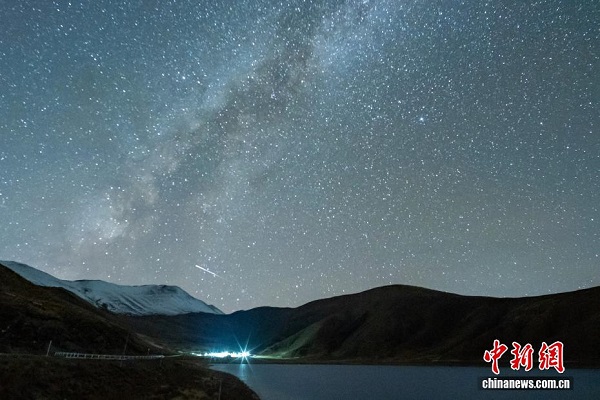 Le lac Yamdrok est aussi connu sous son nom plus court de lac Yam, son appellation signifie en tibétain ? lac de jade ?, il est situé à plus de 4 400 mètres d'altitude, et est l'un des trois grands ? lacs sacrés ? du Xizang. Ces derniers jours, la pluie d'étoiles filantes des Léonides a atteint son apogée, permettant d'observer environ 15 étoiles filantes par heure. Un journaliste a capturé au bord du lac des images de la Voie lactée au-dessus du lac Yamdrok en ce début d'hiver, ainsi que des étoiles filantes des Léonides traversant le ciel nocturne du haut plateau.