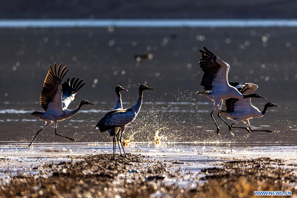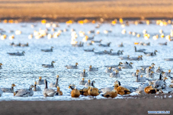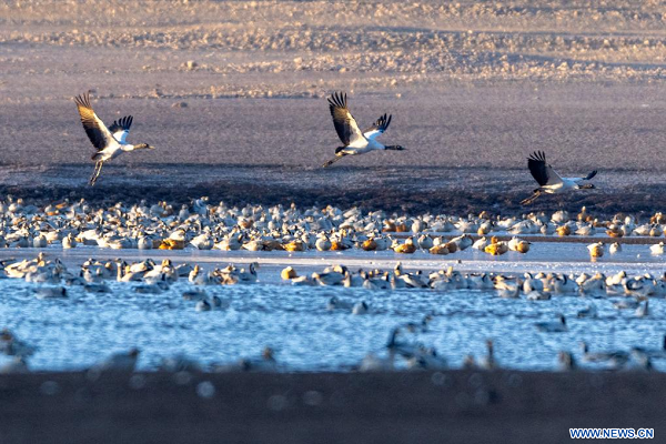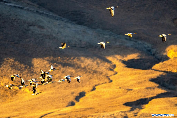 Des oiseaux migrateurs dans le district de Lhunzhub, à Lhassa, dans la région autonome du Xizang (sud-ouest de la Chine), le 23 novembre 2025. (Photo : Li Jian)