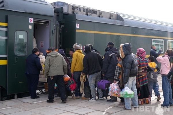 Sur la photo : Le train à destination de Lhassa entre en gare.
